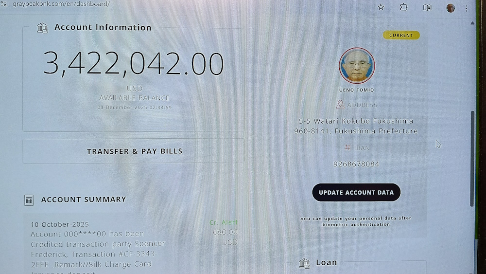 You do not appear to be taking notice of the information I give you that the Gray Peak Bank is a fake or fraudulent Bank and all the communication involving Ms Ichika Yoshida is part of a Romance type fraud which has already defrauded you out of a significant amount of money.