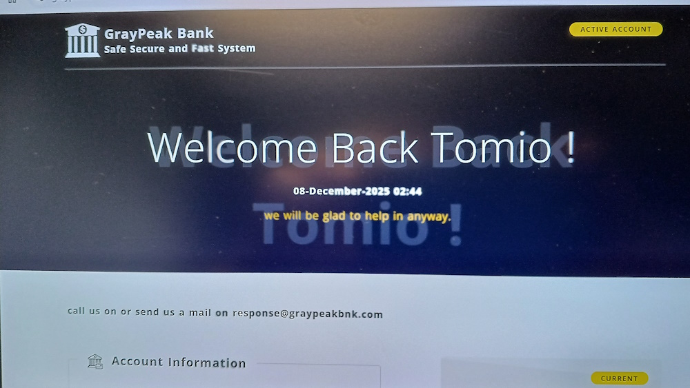 I am sending you a screenshot of my account at Gray Peak Bank.
