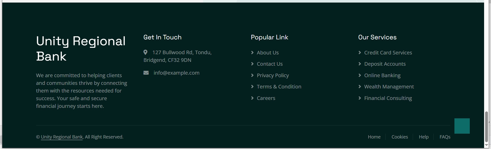 urb1 email address - placeholder text. Footer links do not link to specific pages/sections of the website.
