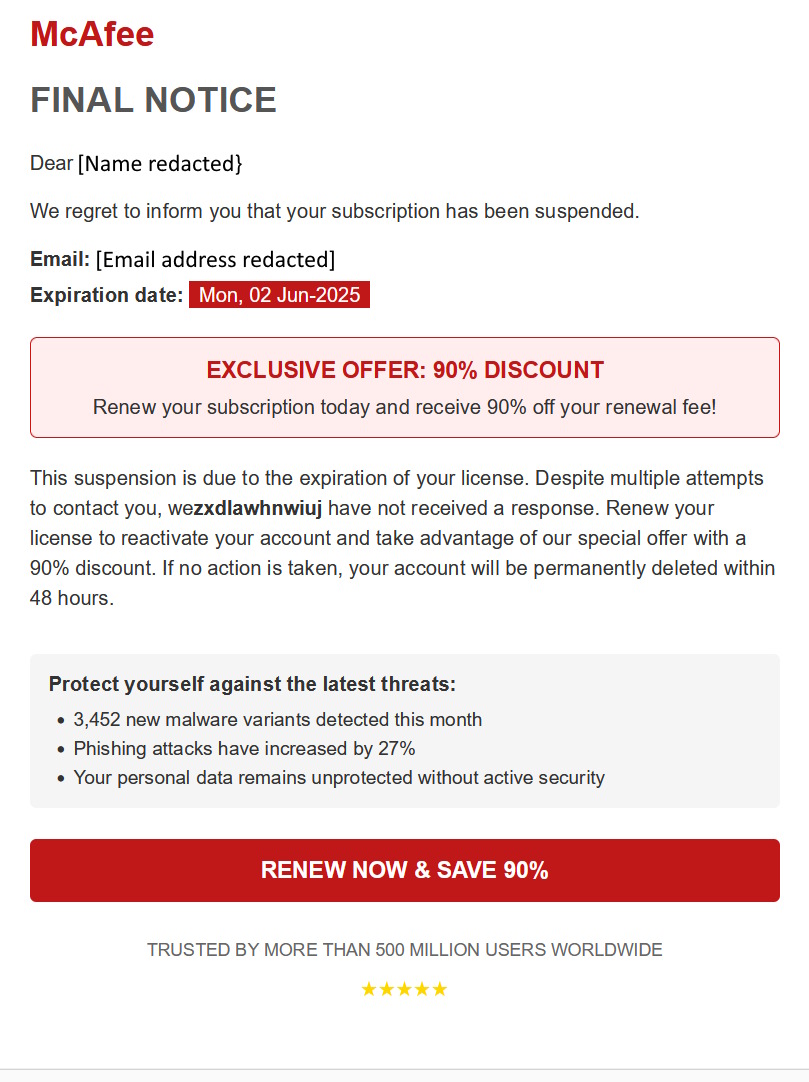 McAfee Renewal Scam