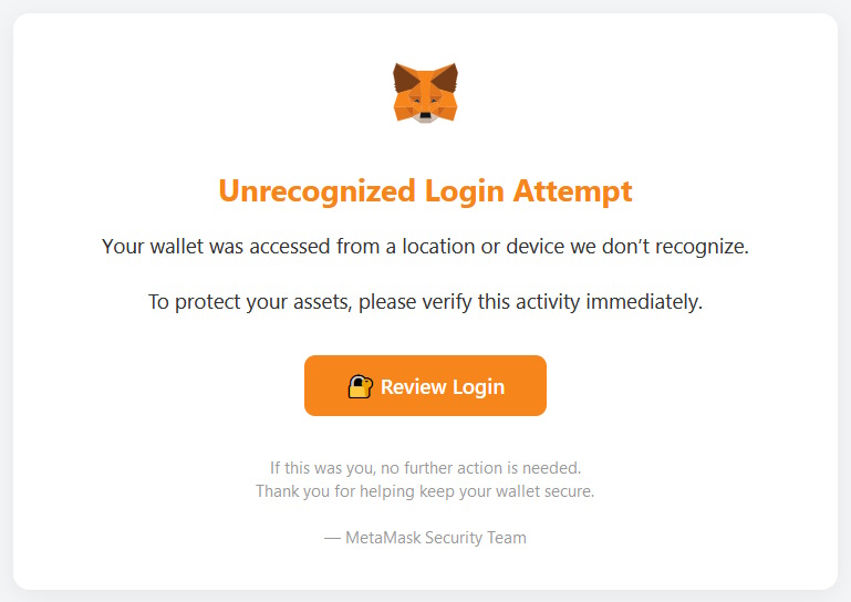 If you make use of the MetaMask Crypto Platform the last thing you want is that a scammer gains access to your account through you revealing your login details on a fake webpage. It is always good practice to pause before taking any action and if in doubt access your platform in your usual way rather than through links in an email you have received.
