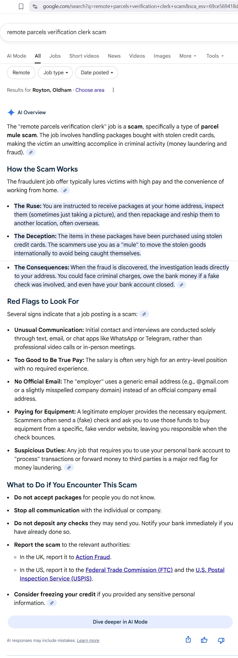 Remote Parcel Verification Clerk Scam